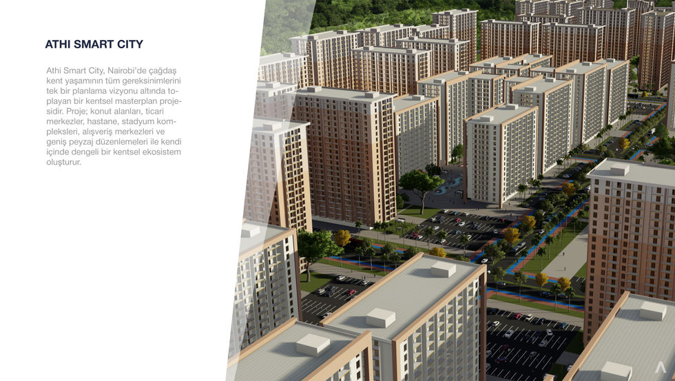 Athi Smart City, Nairobi’de çağdaş kent yaşamının tüm gereksinimlerini tek bir planlama vizyonu altında toplayan bir kentsel masterplan projesidir. Proje; konut alanları, ticari merkezler, hastane, stadyum kompleksleri, alışveriş merkezleri ve geniş peyzaj düzenlemeleri ile kendi içinde dengeli bir kentsel ekosistem oluşturur.